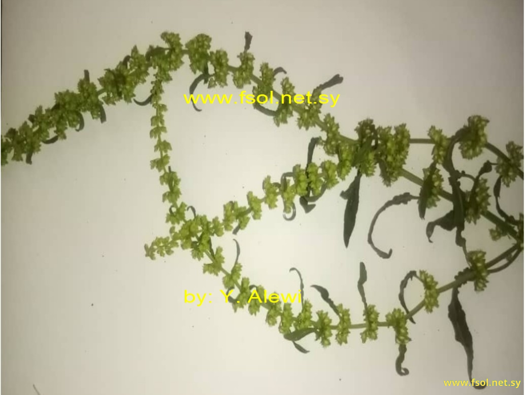 نبات عشبي، ثنائي الحول، قائم، طوله 20- 50 سم، الأوراق متطاولة إلى رمحية، طولها 2,5- 9 سم، الحافة ملساء قليلة التجعد. النورات طرفية وجابنية، راسيمية طويلة، ذات أزهار عديدة مرتبة في حلقات سوارية متباعدة، ذات قنابات ورقية رمحية شريطية. الأزهار صغيرة الحجم طولها حوالي 2 مم، خضراء، الغلاف الزهري يتكون من 6 سبلات، 3 خارجية، و3 داخلية الأسدية 6، المياسم 3. الثمار أكينية، ثلاثية، بيضاوية، طولها 2,5 – 3 مم، مغمورة داخل (السبلات) المصاريع الداخلية المتضخمة المستديمة، المصاريع طولها 4- 7 مم، بيضاوية – متطاولة، مثلثية، سطحها متدرن وحوافها الجابنية ذات أسنان قصيرة طولها أقل من 1 مم، واحدة فقط بها تدرن وسطي بيضاوي