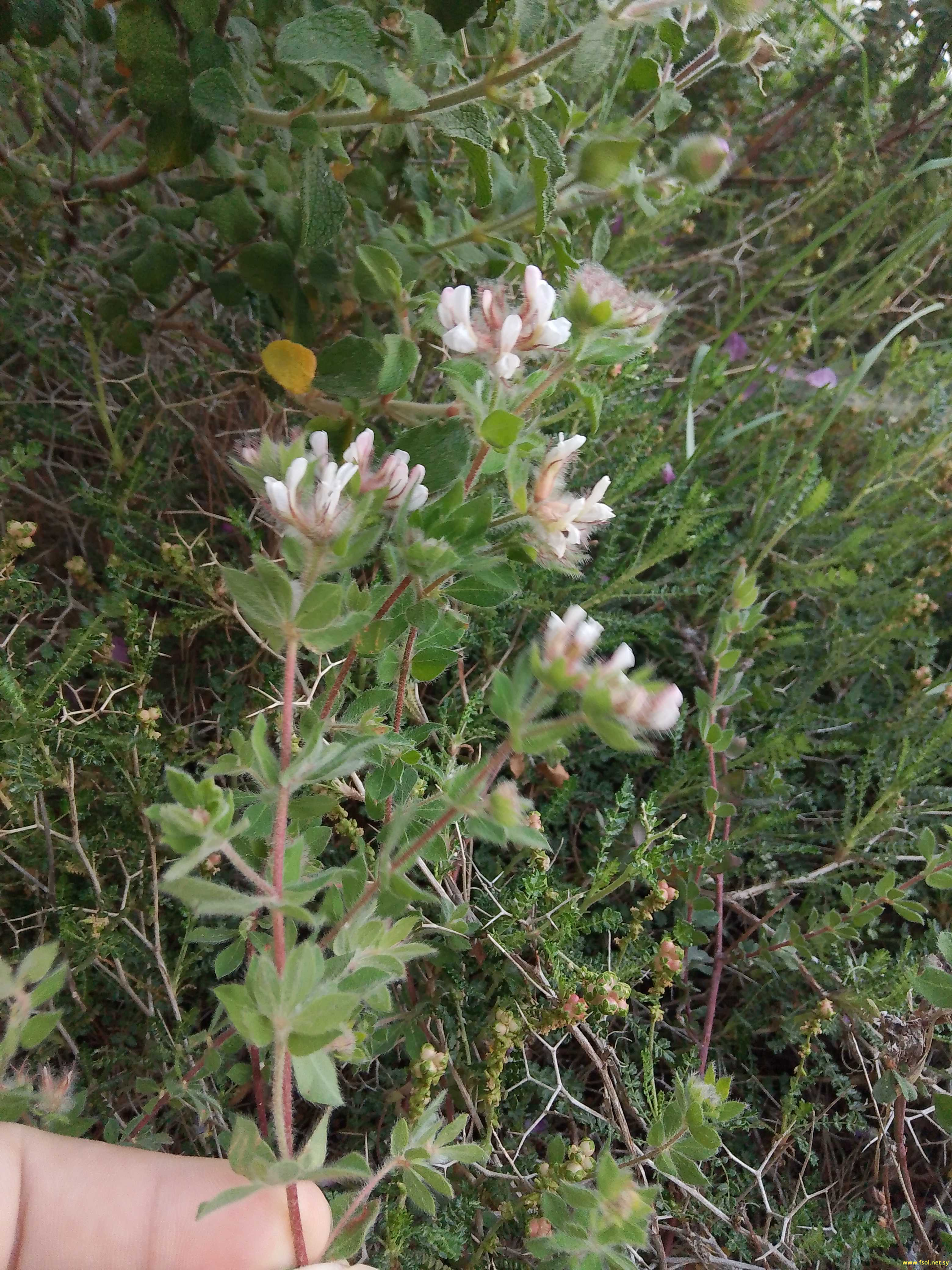 نبات جنيبي، قائم، طوله يصل إلى 50 سم، مغطى بأوبار. الأوراق مركبة ثلاثية، تحتوي على أذينات ورقية، الوريقات بيضاوية مقلوبة إلى متطاولة، 7- 20 مم. الأزهار تتجمع في نورات هامية طرفية، تحتوى كل منها 5- 10 أزهار، طول الأزهار 1- 1,5 سم، بيضاء، ذات علم بنفسجي، الكأس كثيف الأوبار. القلم ذو قاعدة منتفخة. الثمار قرنية، طولها 7- 10 مم بيضاوية- متطاولة، إسطوانية، بارزة قليلا من الكأس، منتفخة، بنية اللون، ذات منقار طوله 5 مم، بها 3- 6 بذور، البذور كروية - عدسية بنية مزركشة بالبني الغامق.