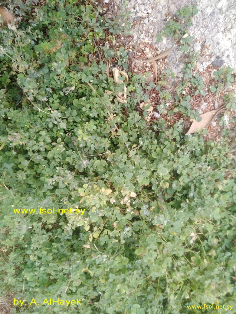 نبات عشبي حولي، طوله 10- 30 سم، يحمل أوباراً متباعدة، مفترش إلى شبه قائم. الأوراق ثلاثية، الأذينات ذات حافة مشرشرة، الوريقات بيضاوية مقلوبة إلى قلبية مقلوبة، 5- 20 مم مسننة من الأعلى. النورات رأسيمية. الأزهار صفراء، طولها 5- 6 مم. الثمار قرنية، قرصية إلى اسطوانية، ملساء، ملفوفة- حلزونية، الحافة الخارجية ذات أشواك، كل لفة تحتوي على بذرة أو بذرتين