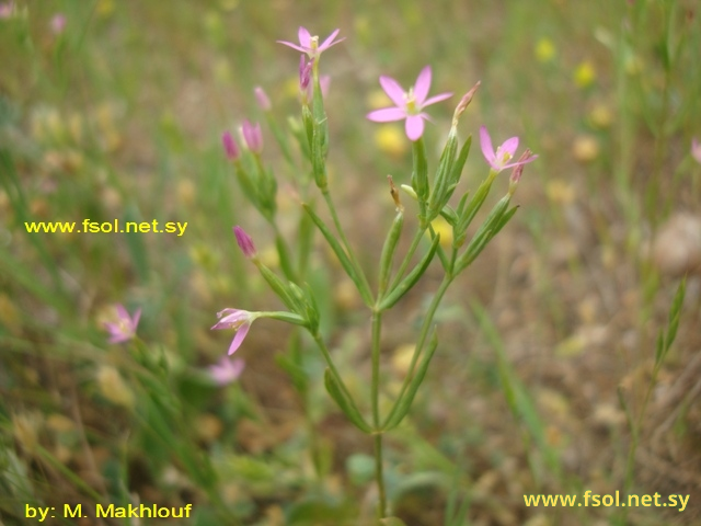 نبات عشبي، أملس، طوله حوالي 15- 20 سم، متفرع من الأسفل. الأوراق بسطة، متقابلة رمحية- متطاولة، طولها 1,5- 3 سم، حافتها تامة. النورة محدودة ثنائية الشعبة مركبة، تحتوي على قنابتين رمحييتين، طول الأزهار 1,5 سم، القنابات 2، شريطية، القنييبات اقصر من الكاس. الكأس ذو 6 فصوص رمحية، ملتحمة مع انبوب التويج، التويج لونه زهري، ذو انبوب غشائي بطول 9 مم، وفصوص طولها 5 مم، الأسدية 6، مغمورة داخل انبوب التويج، المبيض مخروطي، طوله 7 مم، الميسم ثنائي الفصوص. الثمار علبة، إسطوانية، طولها 9 مم.
